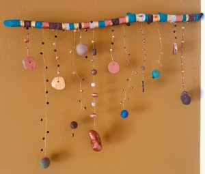 - Windspiel/ Mobile bemalt mit Filzkugeln nassgefilzt, Perlen und Steinen oder mit Strandgut- Kugeln umfilzt ab 39€